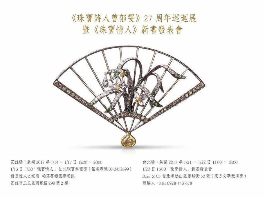 珠寶詩人曾郁雯,跨入珠寶界27年,從一竅不通的門外漢,到知名設計師。今日在台北舉辦「珠寶情人」新書發表會台北場,集結她用珠寶寫情、寫景、寫人生的極短篇小說,搭配一系列珠寶新作品,充滿詩人特色:配色溫柔典雅、洋溢甜美詩意,整體以藍、綠、紅、白、黃等色為主軸,造型走輕奢華風,線條簡約、鑲工細緻,讓珠寶真正為收藏家增添生活樂趣、展現個人風格。