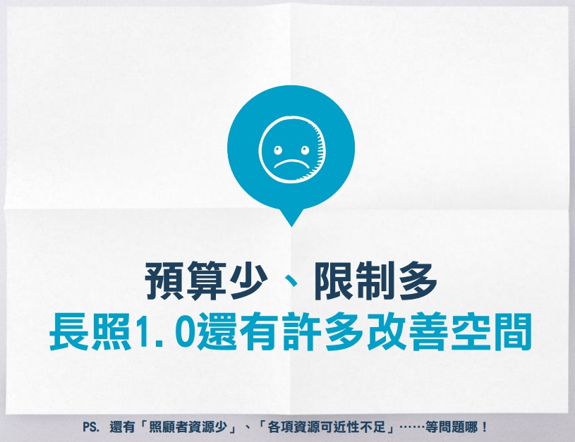 長照2.0想要普及,應該盡量開放讓民間參與,進入市場機制,對於法人組織無需過度強硬要求,透過三年及五年的考核機制來淘汰和頒發等級認證,同時也漸進式的提高服務最低標準,讓成效透明,讓人民有選擇的自由。政府也應該推動長照商業保險,鼓勵大企業投資長照,政府也只是給他一律平等的補助,企業可以用很高的收費提供很頂級的長照服務,讓長照事業成為企業獲利的另一個大項目。長照商業化,減輕政府的負擔,以免成為另一個即將死亡的健保。