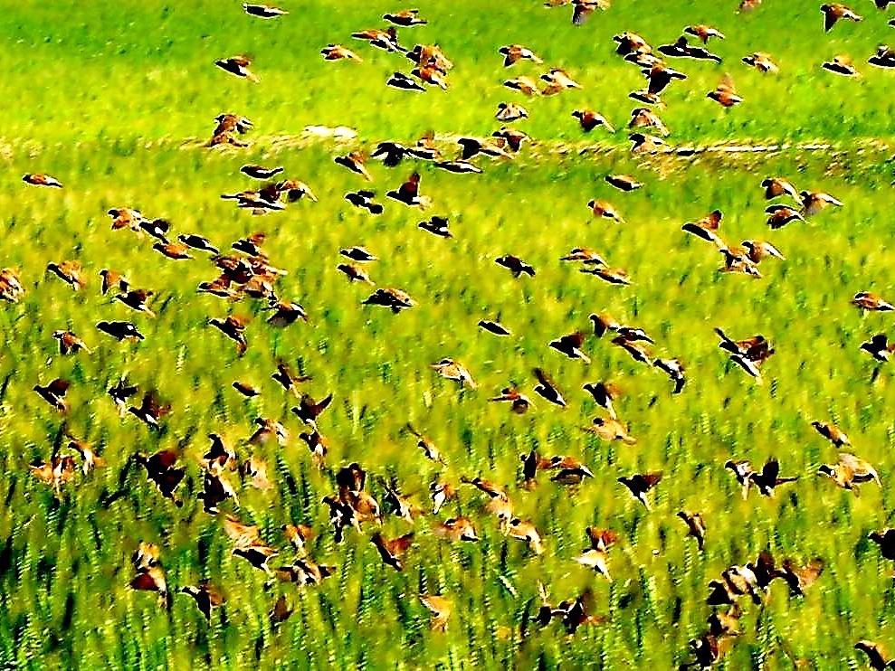 小麥田裡成群的斑文鳥,只要來上幾群,整田小麥都會被啃光。