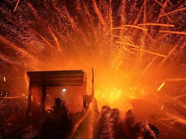 這張拍的很有動感就是成功蜂炮照片即使專業記者也不見得能成功取景