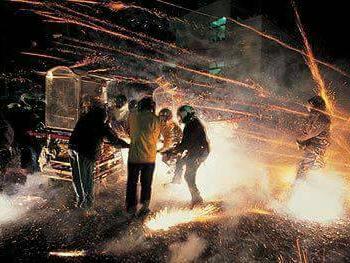 南台灣最刺激的鹽水元宵節蜂炮犁炮城10日晚上登場