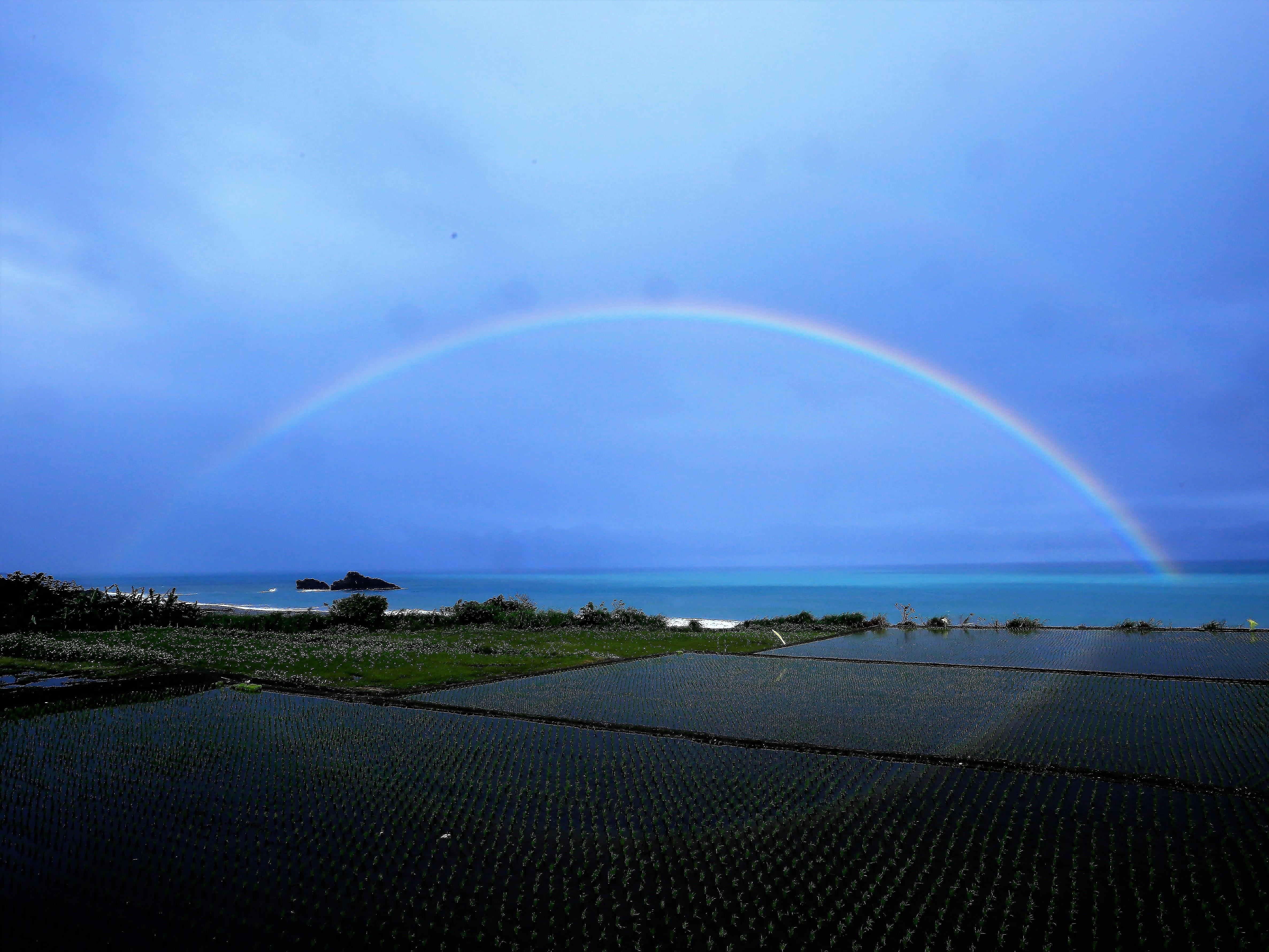 從海邊看海上彩虹,就像彩色拱橋掛在海空之上。換個位置,如果在花東縱谷看彩虹,虹橋是掛在海岸山脈上。隨太陽位置變化,上午太平洋上看不到彩虹,只有黃昏才看得到;花東縱谷就不同了,早上看到彩虹都在中央山脈上,黃昏看到彩虹則在海岸山脈的山頭上。
