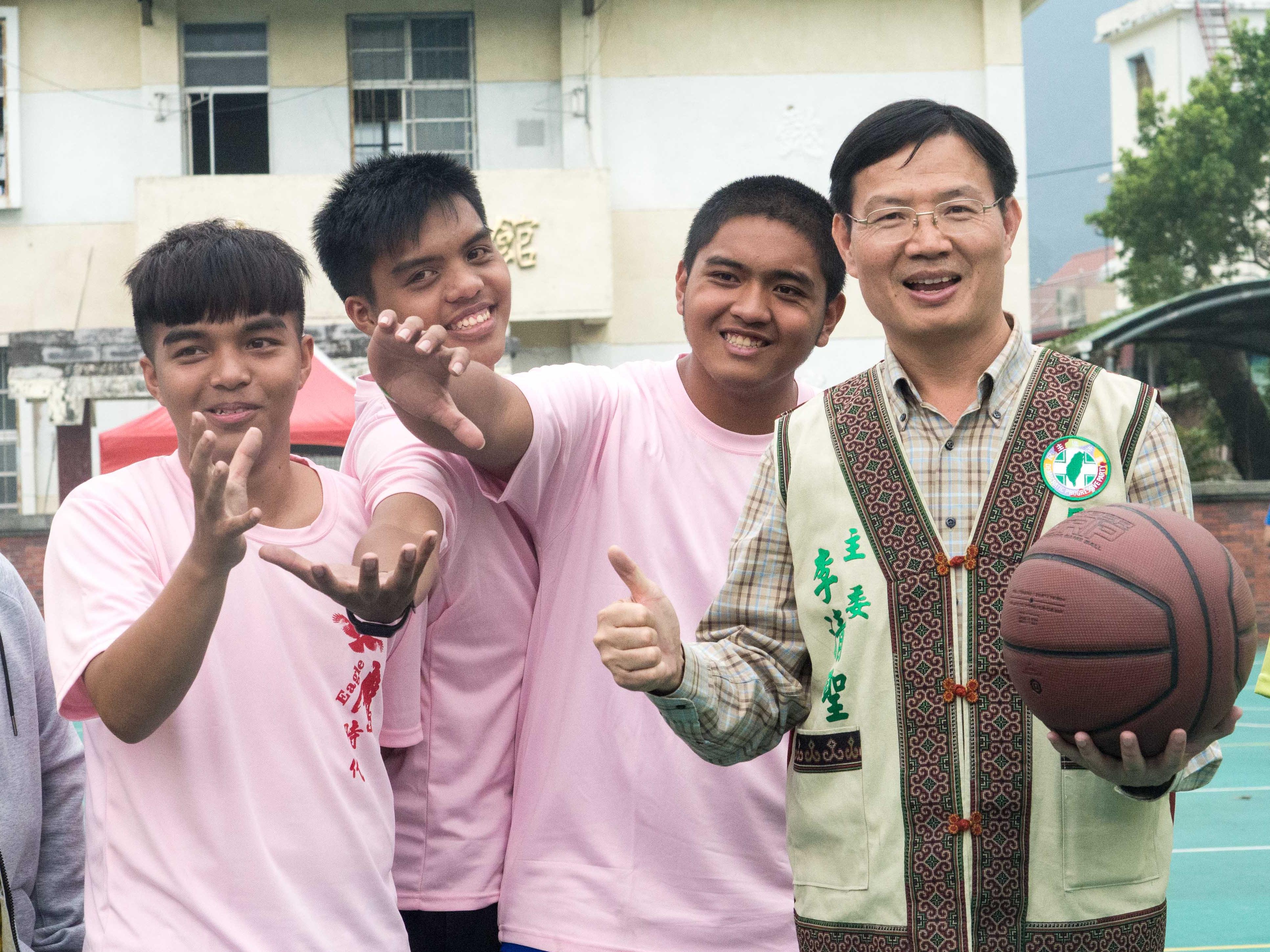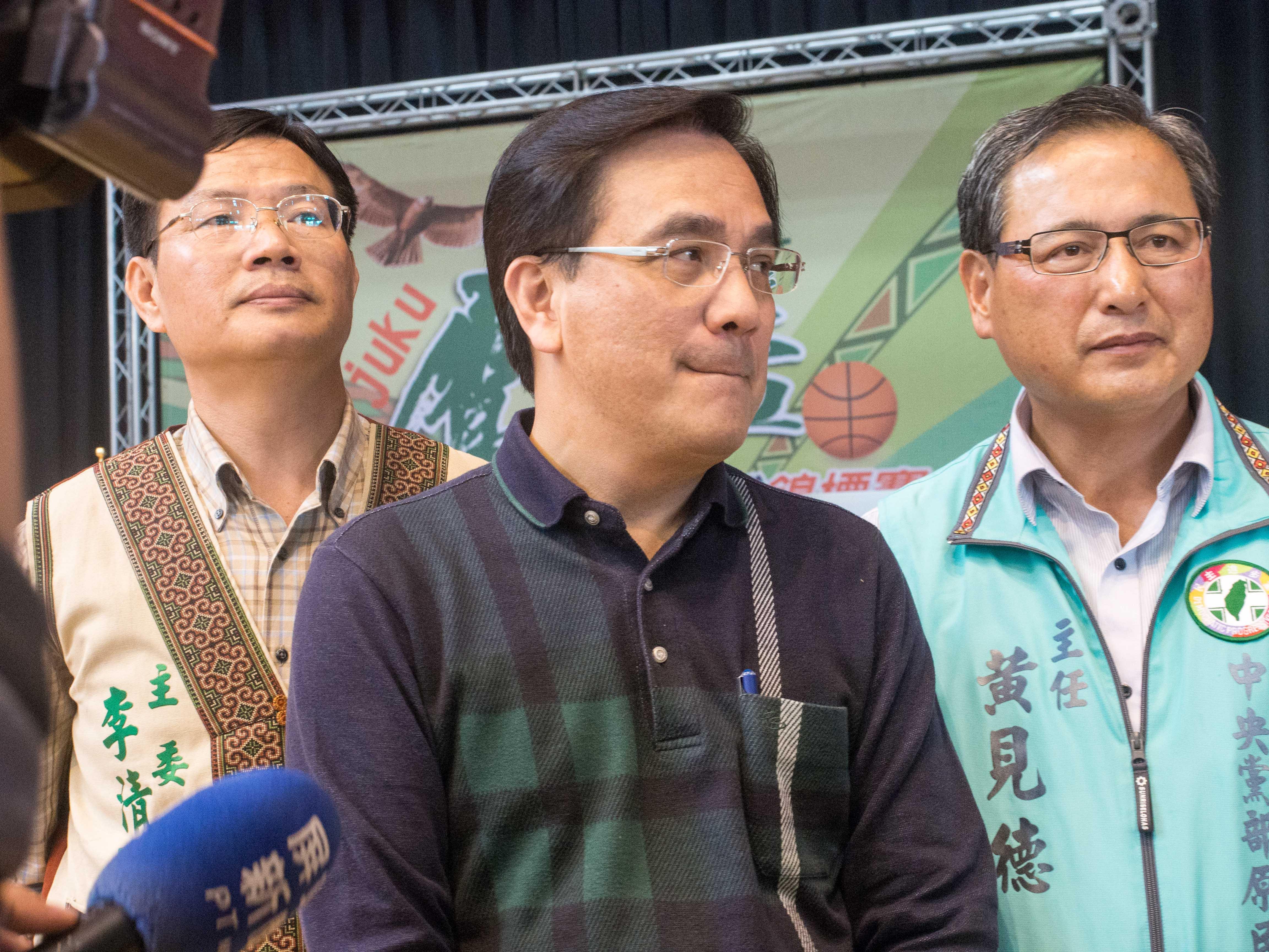 民進黨屏東縣黨部昨天首度至原鄉辦理籃球賽事,以小英原住民名字「tjuku」在來義高中舉辦的「tjuku」鷹族盃籃球賽,包括原委會主委夷將‧拔路兒(中)、中央黨部原民部主任黃見德(右)、縣黨部主委李清聖(左)皆有參加。記者DooChi/攝影 -