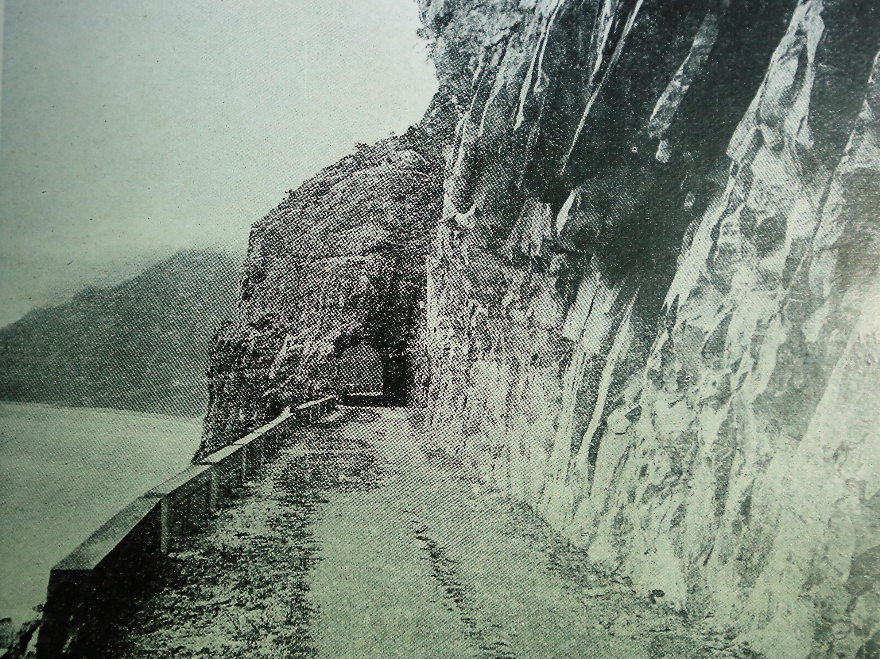 1932年蘇花公路,從清國時代被稱為北路,到日人把它開成只能通行一輛小汽車的公路,八十幾年變化很大。關心蘇花公路的人,從日治時期初開海道路老照片看,當時雖用人力開鑿,但山壁堅挺整齊,不像今日蘇花路靠山路段,都得架設大量落石時,網住山石的鐵網。