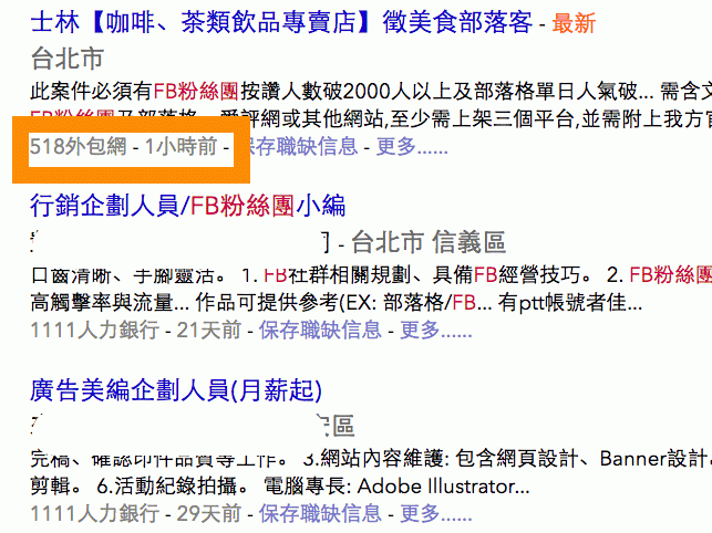 在臉書上及PTT上有人曾呼籲找工作不應該局限於網路人力銀行1111、104⋯⋯等,應該要針對某個自己喜歡的品牌公司以及PTT尋找。