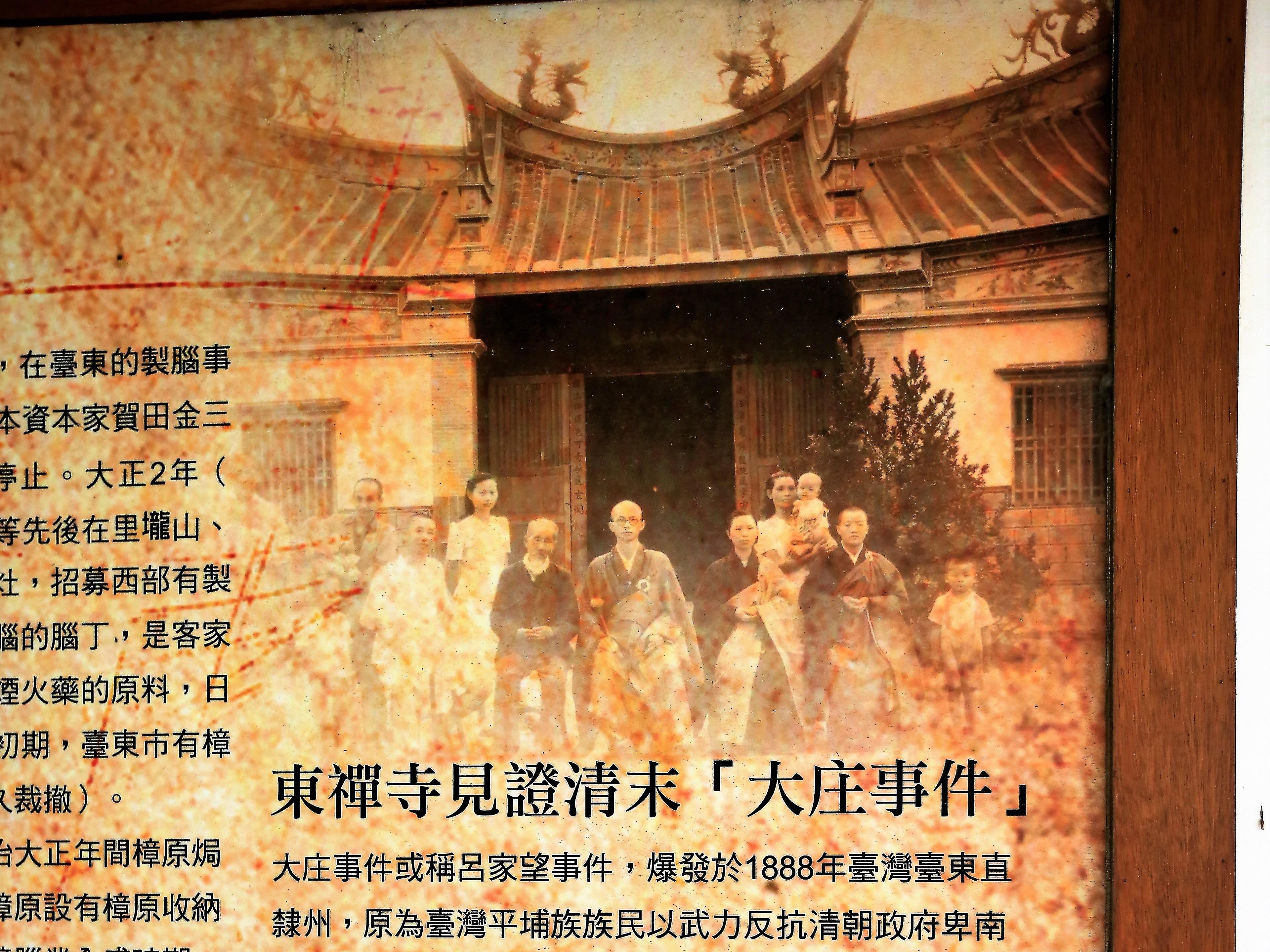 一覺了然法師是台東縣池上鄉的客家人,池上鄉客家文化館就把東禪寺和客家人及大庒民變事蹟製成圖文貼在文化牆上。民變起事地的花蓮縣,很少人記起這段歴史往事,倒是台東有三個地方在傳述這件民變大事。