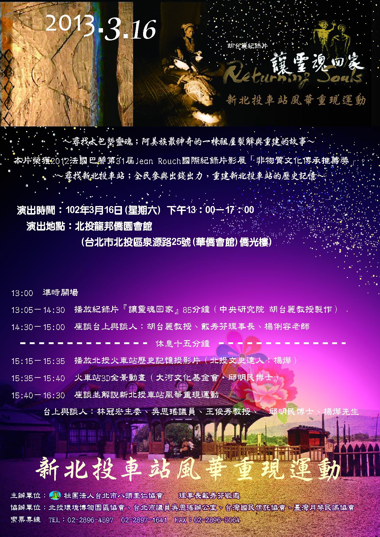 八頭里仁協會用很大的力量於2013-03-16 舉辦了一場讓靈魂回家的千人大型活動,向北投居民宣告停止向老火車站所有權人的乞求。從迎回Mayao Kakalawan 雕像獲得啟示,我們決定開始啟動募款,靠地方自己的力量重建以前失去的記憶。即便是仿造的都值得。