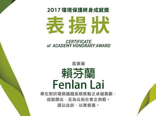 4月15日的全國NGO環境會議,已經決定頒予賴芬蘭終身成就獎,感謝其對台灣的貢獻。