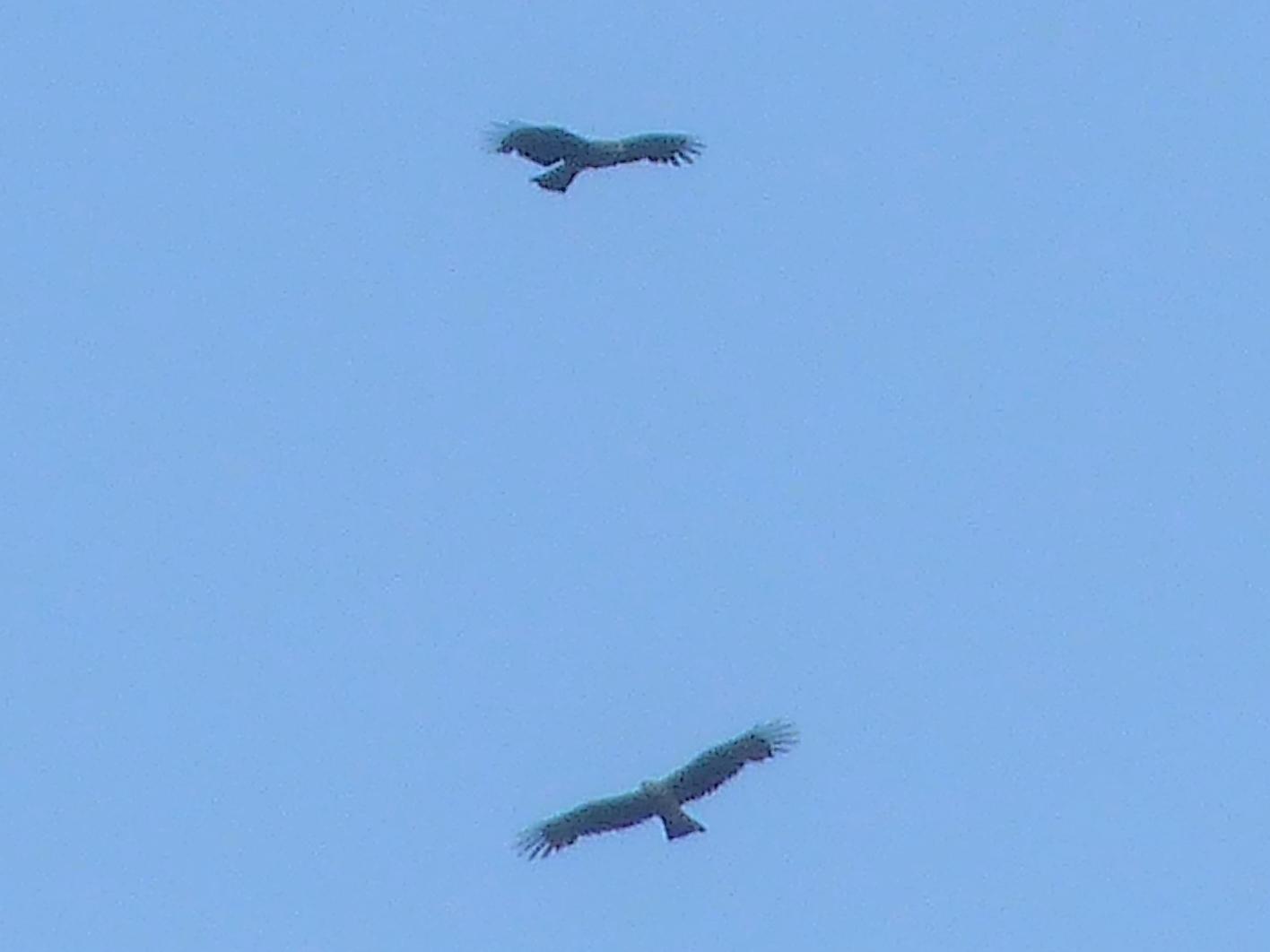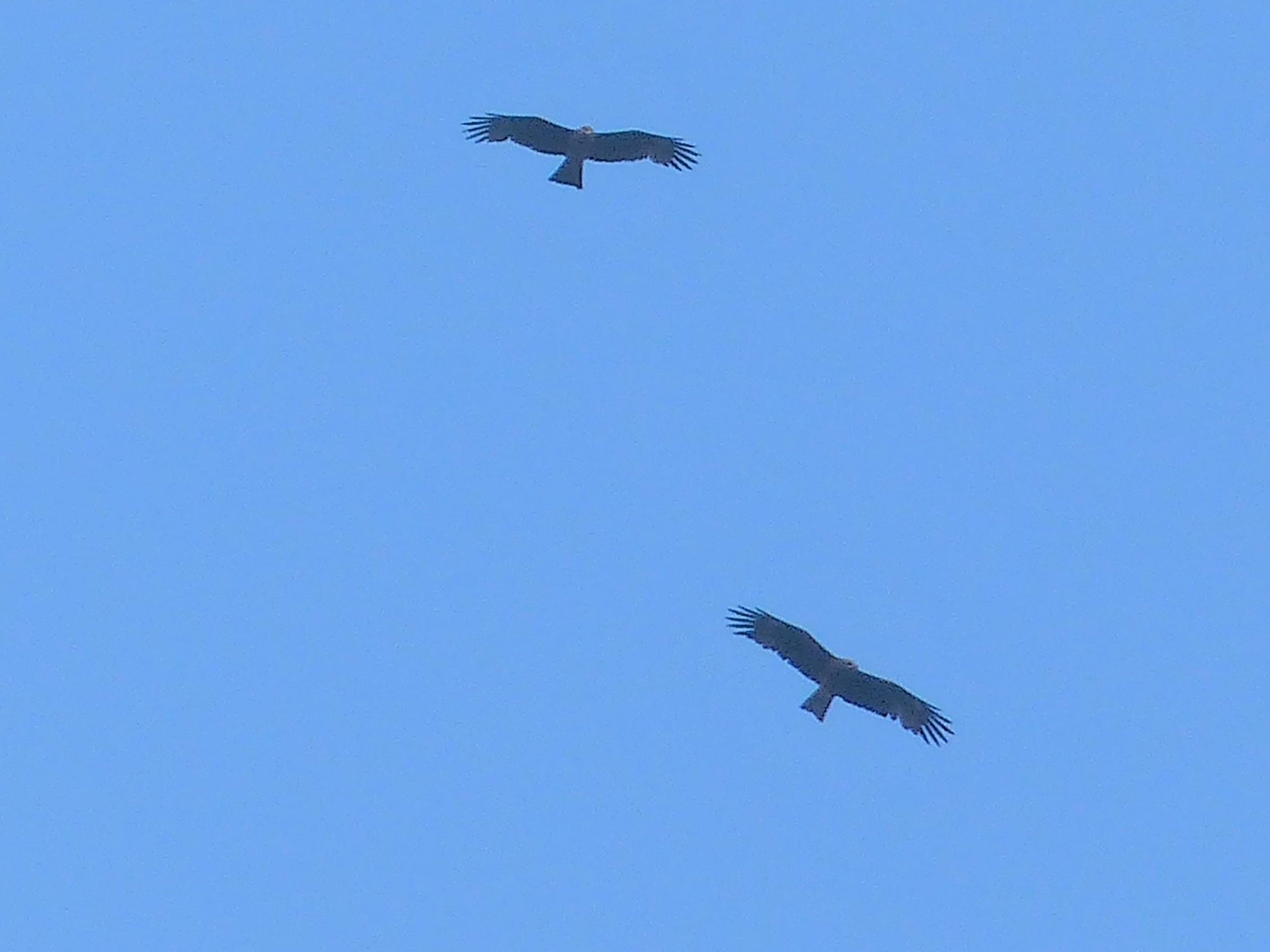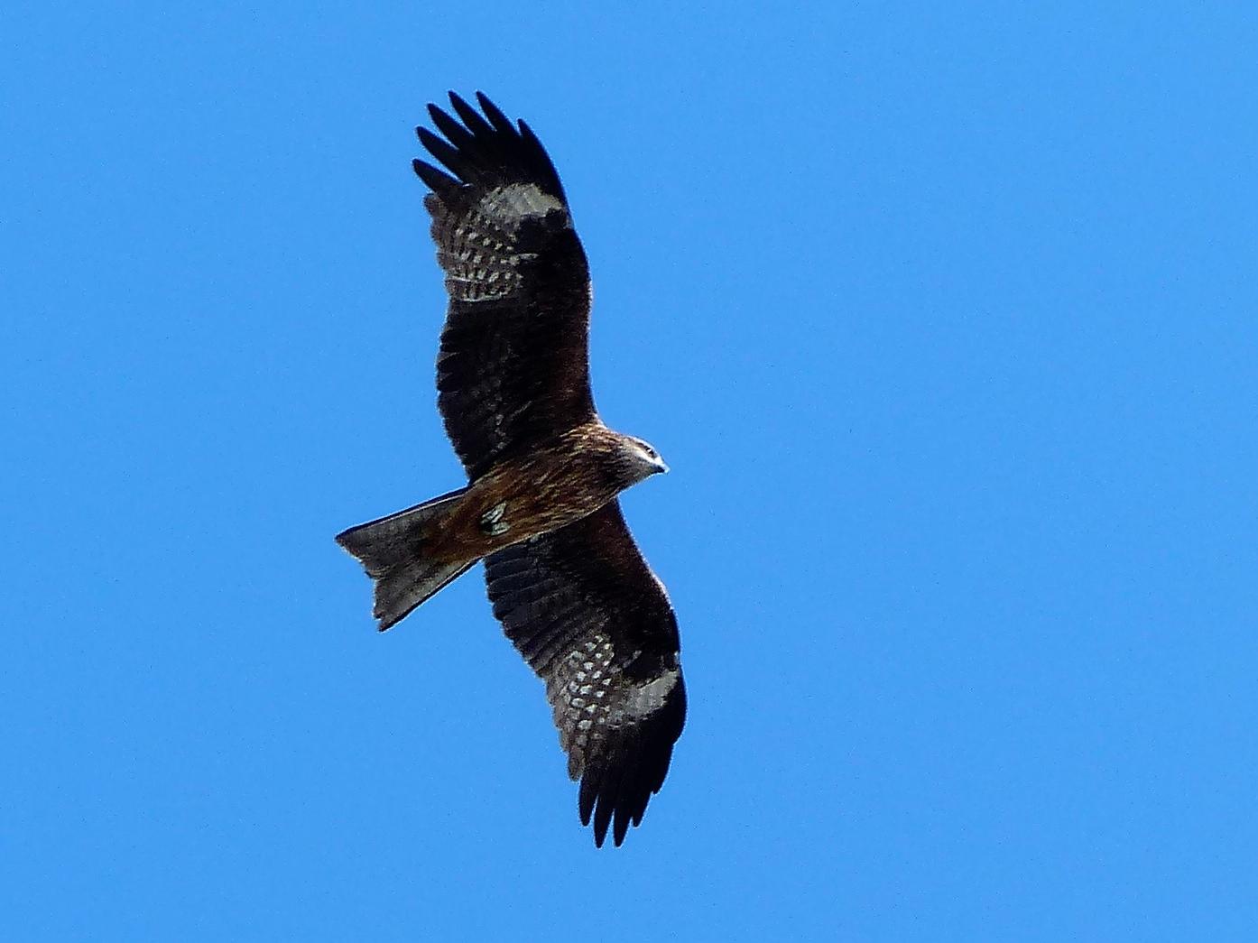 今天傍晚,賞鳥人士在瑪鋉溪上空發現四隻黑鳶 在高空盤旋飛舞;新北市山區黑鳶群較大,但蛇鵰相對較少;而蛇鵰,是現今台灣山區的強勢鷹族,兩者有何競爭關係,令賞鳥人士好奇。