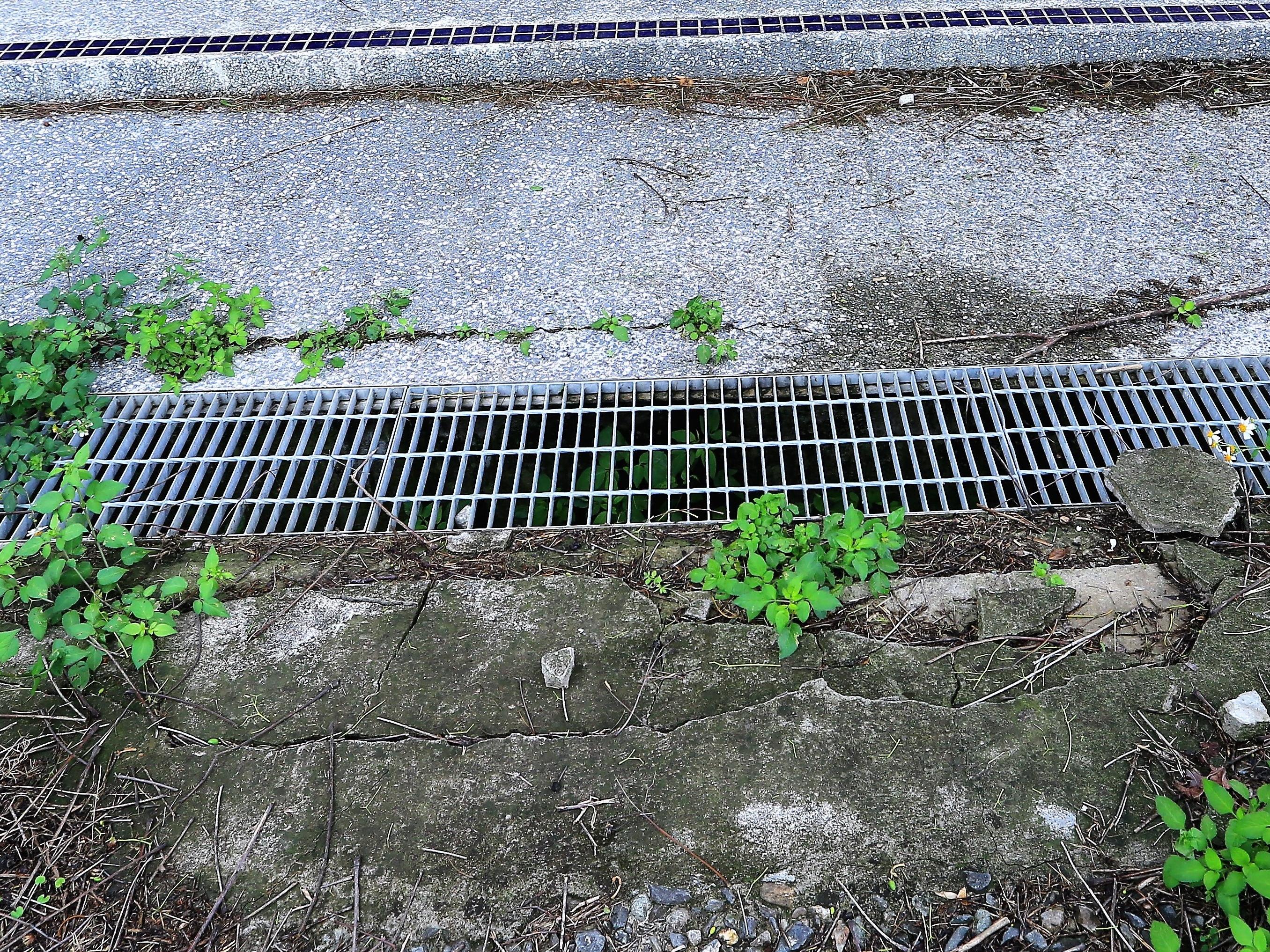 藥草堂的門口,草長出來了,水泥反翹,很久沒人出入。