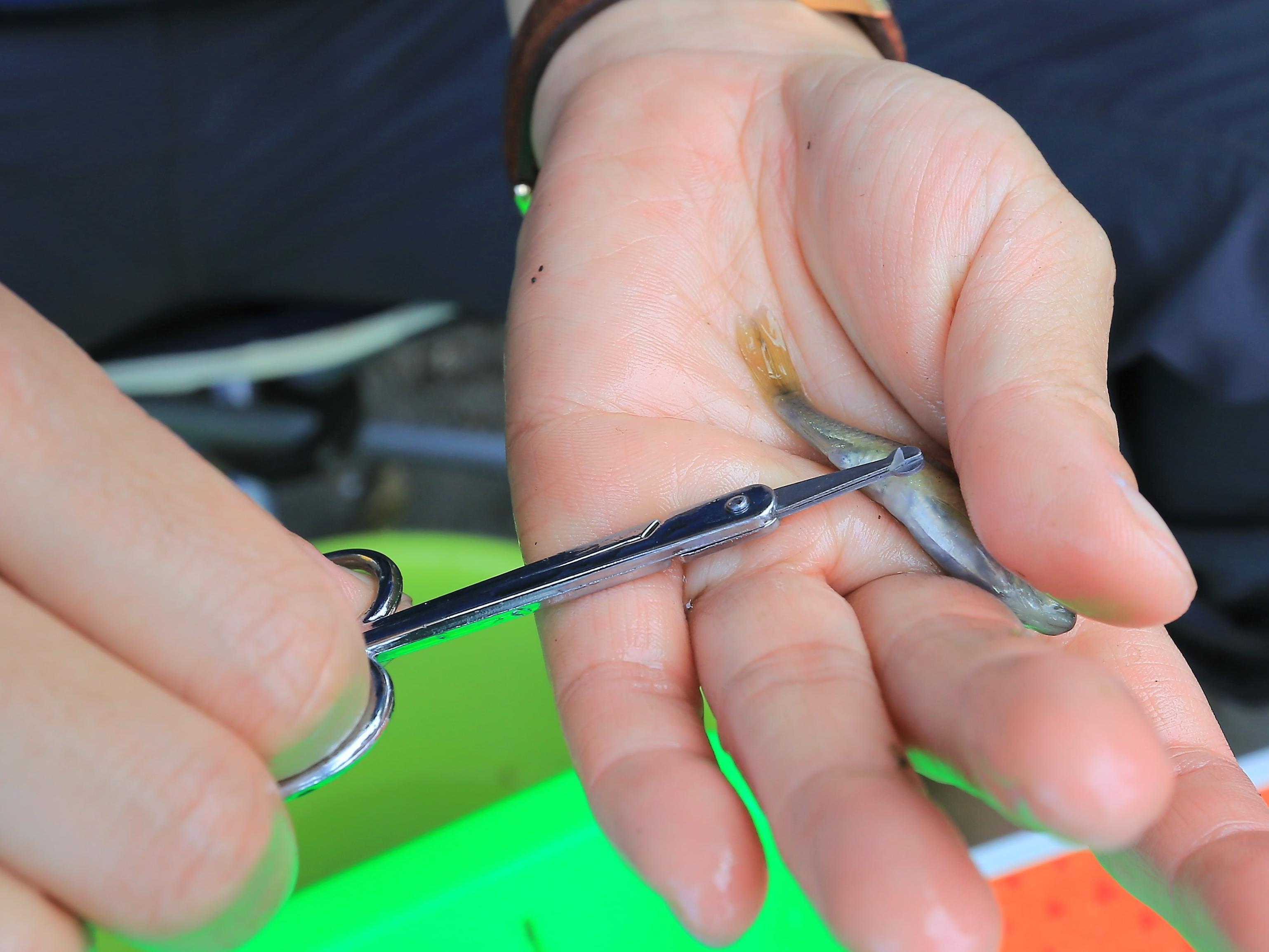 特生中心在正在南安捉魚調查,了解魚體長度、大小,並做下記號,將了解當地菊池氏細鯽的族群大小。