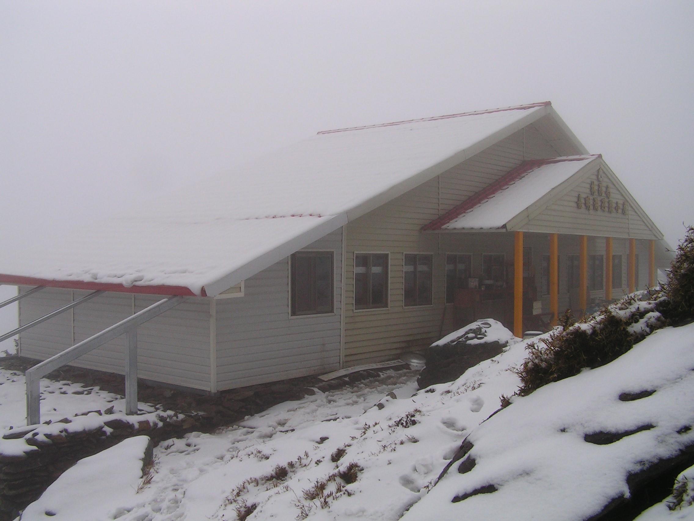 嘉明湖山屋最近在裝鐵門防熊,圖是冬天所拍的雪景。(山友提供)